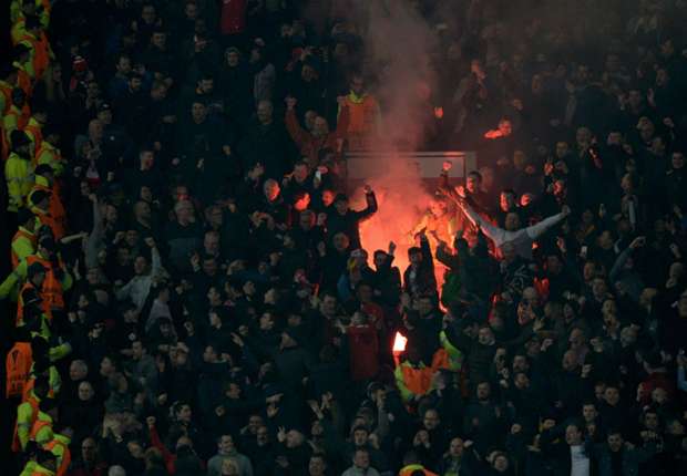 The Reds juga didenda karena menyalakan kembang api di pertandingan kedua, sementara United didenda karena menghalangi jalan masuk.